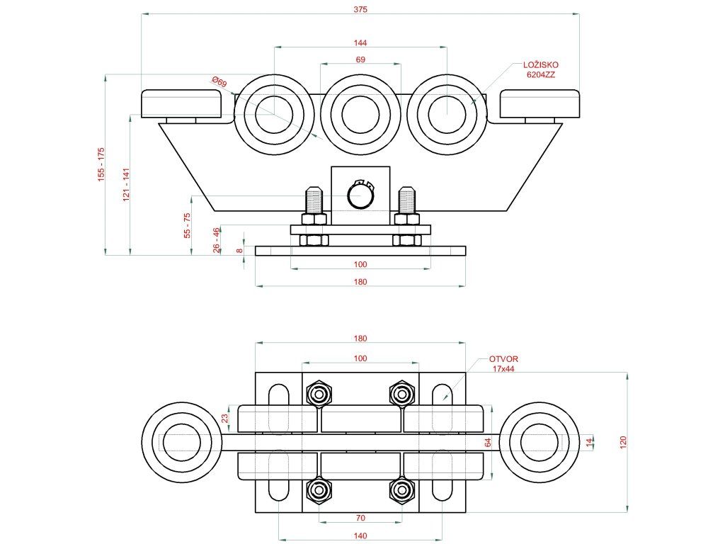 Nastaviteľný vozík do 450 kg, pre profil 80 × 80 mm, pozinkovaný